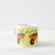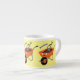 Cute happy orange wheelbarrow cartoon illustration espresso cup