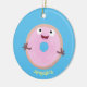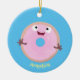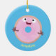 Cute happy pink glazed doughnut cartoon ceramic ornament