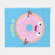 Cute happy pink glazed doughnut cartoon fleece blanket