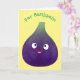 Cute happy purple fig fruit cartoon card