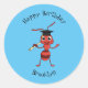 Cute happy red ant cartoon classic round sticker