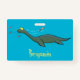 Cute, happy sea monster plesiosaur cartoon ID badge