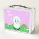 Cute happy sheep cartoon, flowers & star metal lunch box