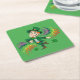 Cute happy smiling dancing leprechaun, a rainbow square paper coaster