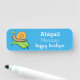 This badge looks professional and it's in keeping with my branding. The magnetic attachment is strong and stays in place all day. The quality of the materials and the colors were exactly as pictured. I couldn't be happier! The printing is clear and easy to read