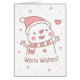 A cute happy snowman with a Santa Claus hat and striped scarf. The message reads "Warm Wishes!" A happy Christmas doodle that you can't help smiling to. The inside of the card includes a mistletoe doodle.