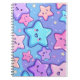 Cute happy star pattern in pastel colors in kawaii chibi style.