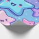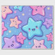 Cute happy star pattern in pastel colors in kawaii chibi style.