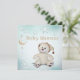 Cute Happy Teddy, Moon & Stars Baby Shower Invitation