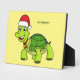 Cute happy tortoise wearing Santa hat Plaque