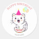 Cute Happy White Cat with Balloons Birthday Classic Round Sticker