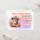 Invite the guests with this owl wearing a hat, sitting on a log with pink flowers. All the party information is on the front. Personalise the text fields, remove text or use the edit design tool to select a font style, colour, and size you like.