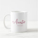 A simple and cute personalised name auntie coffee mug. This custom mug design features a doodle heart and calligraphy script font in a dusty mauve design. Makes a great gift for the aunt in your life.