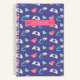 Cute and colourful pattern spiral notebook with personalised name. Perfect for diary, life journal, sketchbook, recipe book or just taking notes in class. Sweet Valentine's Day pattern with kawaii love and heart. Great for kids and teen girls. Make a great gift for back to school celebration.