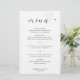 Modern wedding menu featuring a simple and minimalist design in black and white with the word "menu" in an elegant typography and a cute heart at the end.
