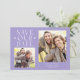 Simple and modern wedding save our date card featuring a text that says "Save Our Date" with hearts. 2 photos on the front and one on the back. The background is lilac.