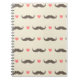 Cute Hearts and Moustache Hipster Pattern Notebook
