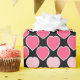 Customisable lovely wrapping paper sheet for Valentine's Day with hand drawn pink hearts pattern on black background.