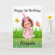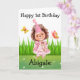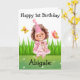 This is an adorable birthday card for a little girl with a cute girl hedgehog in a pink dress and party hat in a garden with two butterflies. This card can be personalised by changing the front text and name as well as the inside message.
