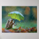 Cute hedgehog holding a leaf umbrella poster
