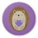 Hedgehog love. Cute hedgehog holding a purple heart design.