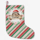 Make Christmas morning extra special with this personalised stocking, featuring a sweet little hedgehog in a Santa hat, holding a wooden sign with your child’s name. Surrounded by a candy cane wreath, it’s a fun and festive keepsake parents and kids will love year after year.
