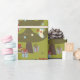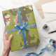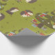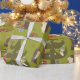 This cute and funny holiday gift wrap paper is great for a girl or a boy. The design features a festive green background with hedgehogs decorating their Christmas tree with presents and a sleigh.