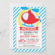 Cute Helicopter; Blue & White Stripes Invitation