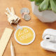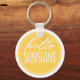 Enjoy the day with this cute keychain featuring "hello sunshine" handwritten-style typography in white on a yellow sun. Makes a great gift!
