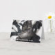 On the front of this cute birthday card, a grey fuzzy cat peers out with yellow eyes from a black and white striped blanket. The text below him says "No need to hide away!" The inside says "It's just another birthday!" Below, in smaller print is the text "Have a happy one!" All of the text can be easily customised, so you may make it say whatever you'd like.