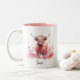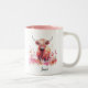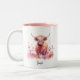 Cute Highland Cow Pink Floral Watercolor Two-Tone Coffee Mug