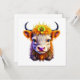 A cute highland cow with a yellow flower in her hair. Blank card to send to a friend.