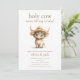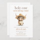 Cute Highland Holy Cow Having a Baby. Available digitally and printed. Farm cuteness for your baby shower. Easily personalise the text as required and change the text and background colours if you wish via the edit further option. With a sweet highland cow wearing a straw hat illustration.