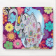 Cute Hippie Elephant with Colourful Flowers Mouse Pad