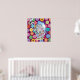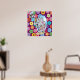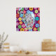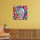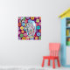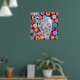 A bright colourful elephant decorated with hippie flowers and on a bright flower purple background. Cute kids elephant smiling with it's trunk up. "elephants" "hippie elephant" "elephant with flowers" "floral print" "Cartoon elephant" "kids" "smiling elephant" "cute" "hippy" "girly" "purple flowers" "colourful" "bright" "pretty"