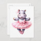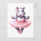 Cute hippopotamus ballerina dancing ballet. Watercolor illustration.