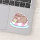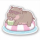 A cute pygmy hippo is chilling on a pool float and drinking coconut juice! Adorable summer design for hippo lovers!