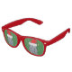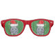 Adorable animal Christmas party sunglasses featuring a funny hippopotamus in green and red wearing a Santa hat. Whimsical holiday hippo shades.