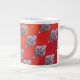 Cute Hippo in Santa Hat Pattern on Red Large Coffee Mug
