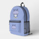 A cute hippo on a blue backpack with a customisable text. Perfect for school, office or just for walks. You can also make a gift to a friend who loves Kawaii animals!