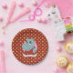 Personalised design of illustration of a head of cute hippo in pink circle on red background, with customisable text template for you name or message