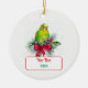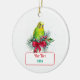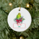 Cute Holiday Parakeet and Christmas Bow Ceramic Ornament