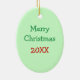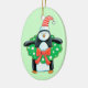 This cute Christmas ornament features an image of a cartoon penguin in a green Christmas wreath with a red bow. The image is placed on a light Holiday green background, with customisable text on the opposite side that currently says Merry Christmas and the year in red and green. You may easily make it say whatever you'd like. Festive, unique, and colourful! Kids will love it!