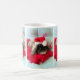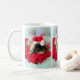 Holland lop Daisy makes an adorable Christmas mug. She is wearing her Christmas hat and red boa on a blue background and giving us her classic I am a cute bunny look. Make a bunny lover happy this Christmas with this cute Daisy mug! Copyright Peaches the Tuxedo Cat
