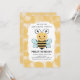 Cute, neutral birthday party invitation features a honey bee on a background of hand painted, abstract honeycomb inviting guests to buzz on over for a "Bee-Day" party. The yellow colour is perfect for a girl or boy's birthday. Original artwork KL Stock.