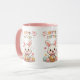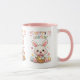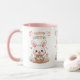 Celebrate the joy of Easter with this adorable Cute Hoppy Easter Bunny Mug. Featuring a charming kawaii-style white bunny holding a basket of colorful eggs, surrounded by flowers, butterflies, and pastel accents, with vibrant "Hoppy Easter!" text in rainbow colors. The pink interior rim adds a sweet touch to this whimsical design, perfect for springtime sipping or gifting.