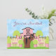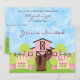 ~Cute Horse with Heart Star, Pink Barn with Pretty Flowers and Trees Birthday Party Invitation for Girls.