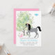 The front of the invitation showcases a charming illustration of a cute horse surrounded by lush green trees, evoking a sense of adventure and natural beauty. The design sets the perfect tone for a memorable equestrian-themed celebration.
