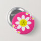 This adorable button features white flowers with a hot pink background and fancy lettering for personalising.