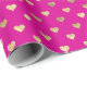 Cute Hot Pink Gold Hearts Pattern Wrapping Paper